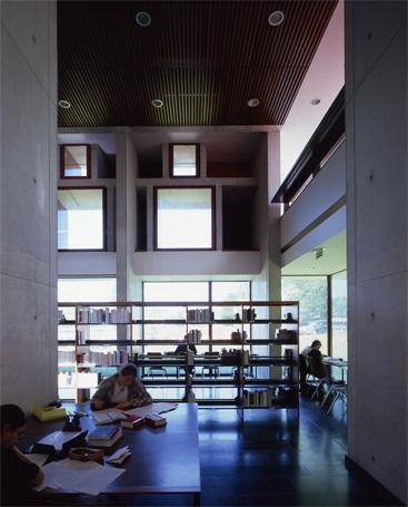 La nouvelle bibliothèque de droit et de sciences économiques de Besançon se situe dans le sens longitudinal du terrain pour mettre en valeur, d’une part, la vue exceptionnelle sur la vallée et d’autre part, pour offrir une transparence vers le parc de l’observatoire. Le corps du bâtiment est très bas pour laisser la vision des arbres, hormis le volume de l’administration marquant l’entrée par un developpement vertical.